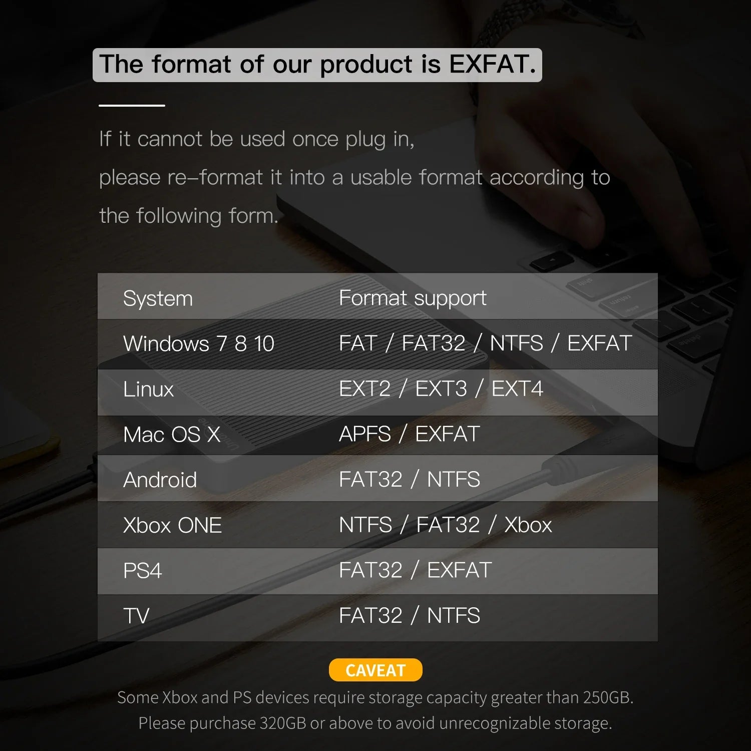Il vous suffit de brancher pour commencer à l'utiliser. Notre disque dur externe est conçu pour une utilisation simple et rapide, sans installation préalable ! Compatible avec divers systÚmes d'exploitation, notamment Windows 10/8/7/Vista/XP, Mac OS X et Linux OS, il s'adaptera parfaitement à votre environnement actuel.