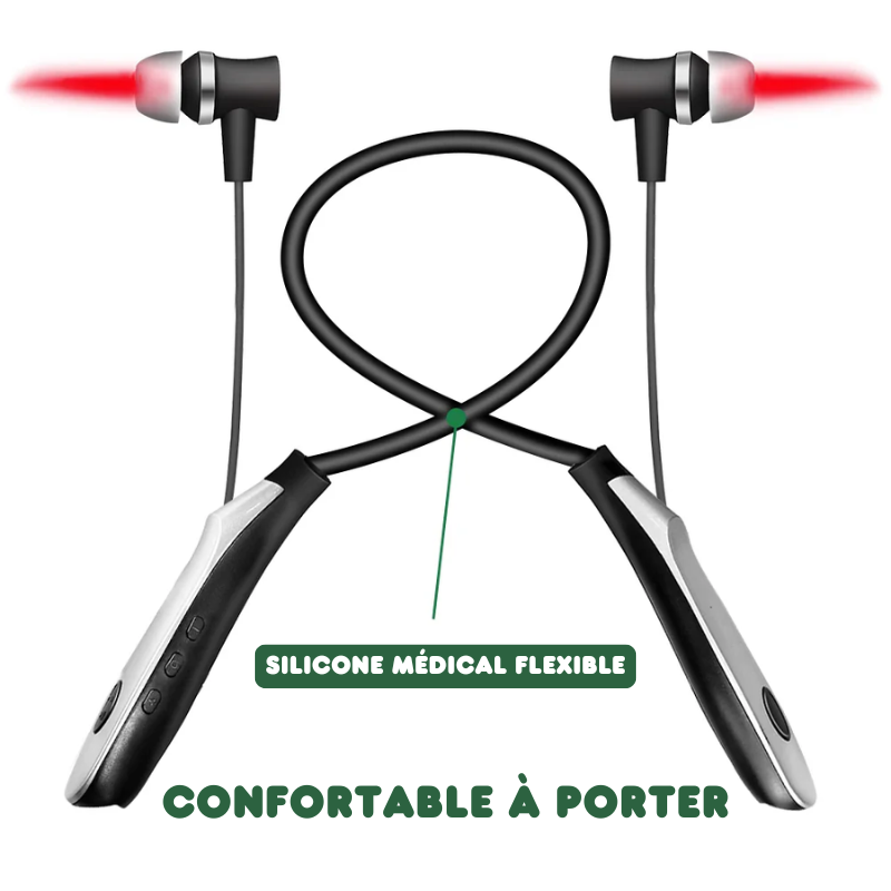 Les acouphènes se manifestent par des bourdonnements, sifflements ou grésillements persistants dans les oreilles, affectant la concentration, la qualité du sommeil et le bien-être général. Pour beaucoup, ces bruits deviennent insupportables, sans véritable solution durable... Nos écouteurs thérapeutiques infrarouges apportent une réponse innovante, sans médicament, sans douleur et sans intervention. Grâce à une technologie de lumière rouge de précision, ils offrent un soulagement notable et progressif dès les premières semaines d’utilisation.