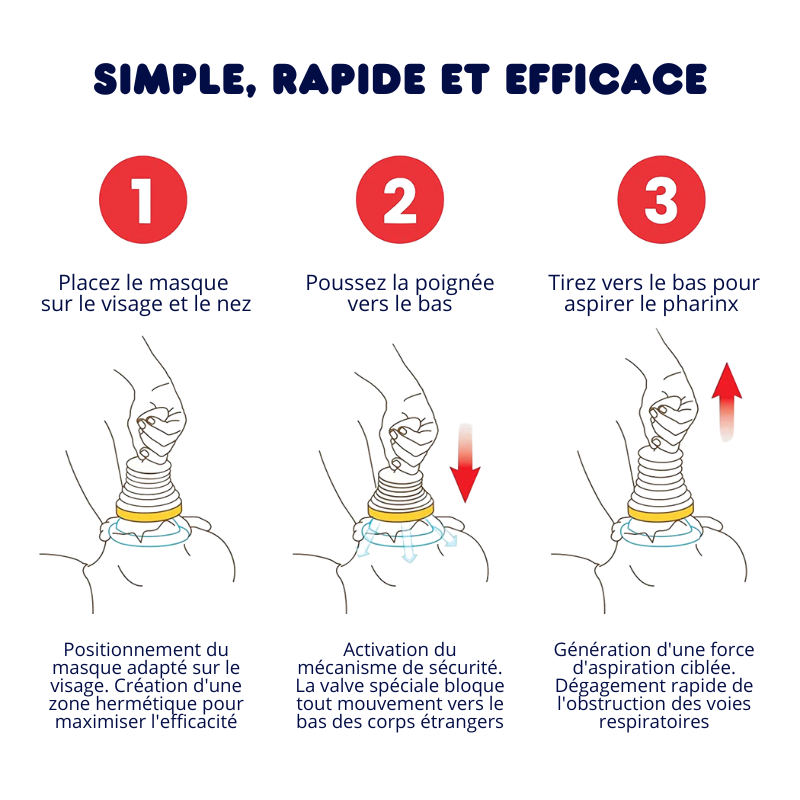 Points forts 🩺 Appareil non invasif – Sans risque pour les voies respiratoires ⏱️ Intervention rapide – Libère les voies en quelques secondes 🎒 Compact & portable – À emporter partout :...