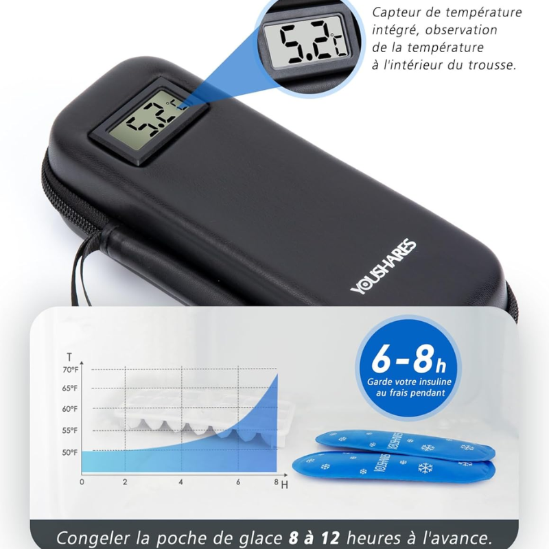 - 1 x Pochette de Voyage Isotherme pour Insuline - Affichage Température